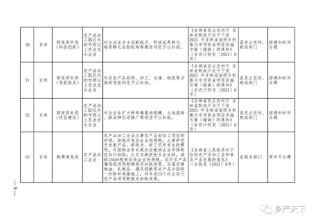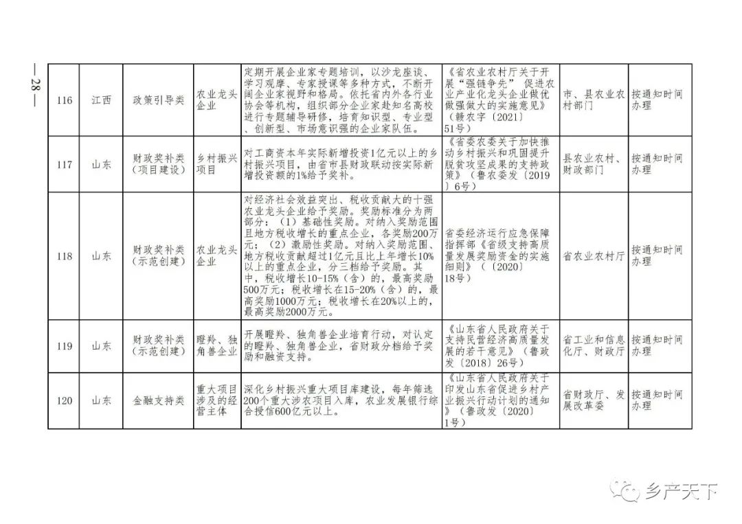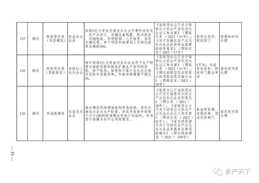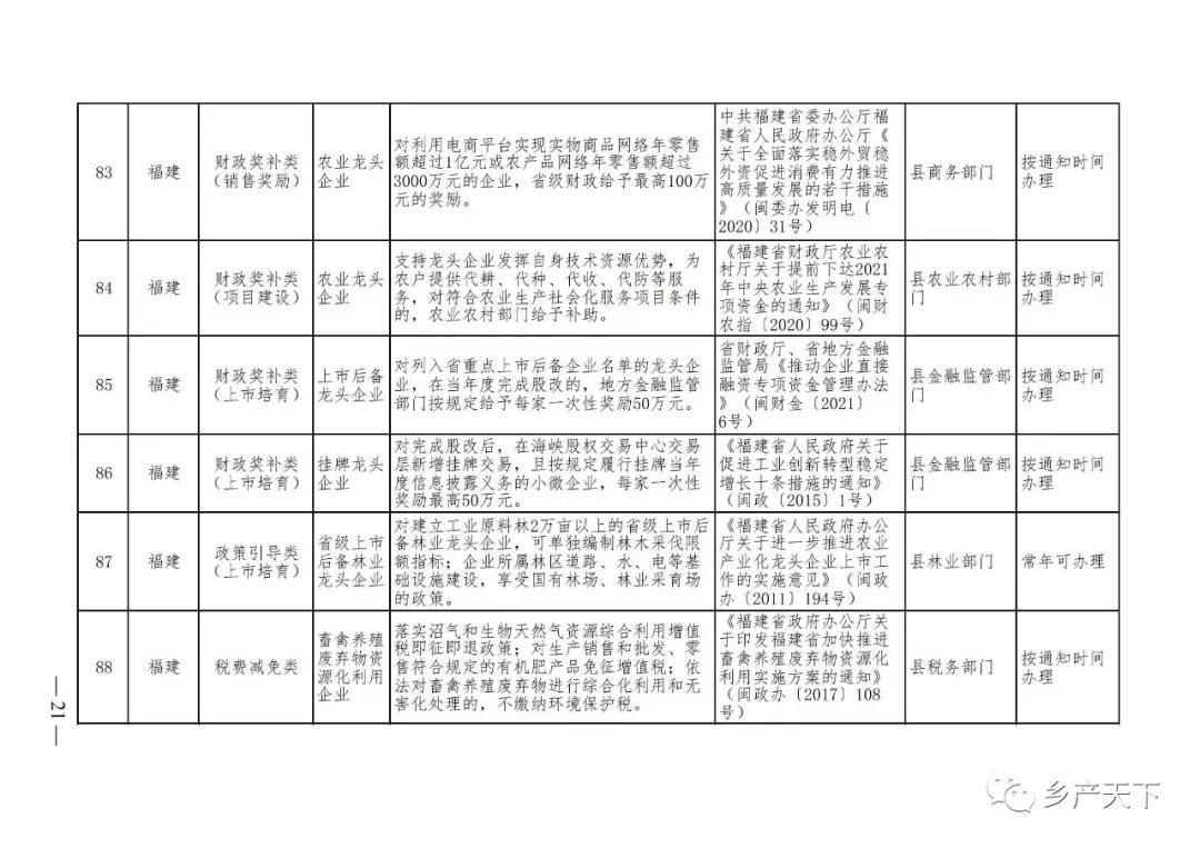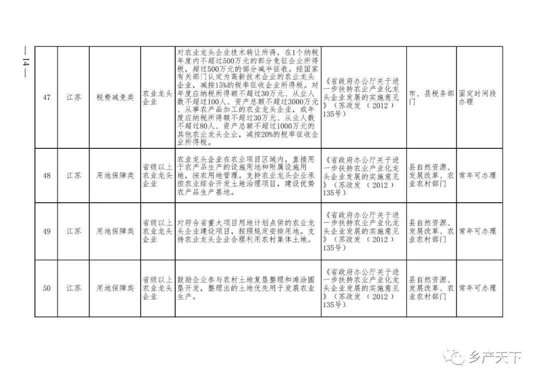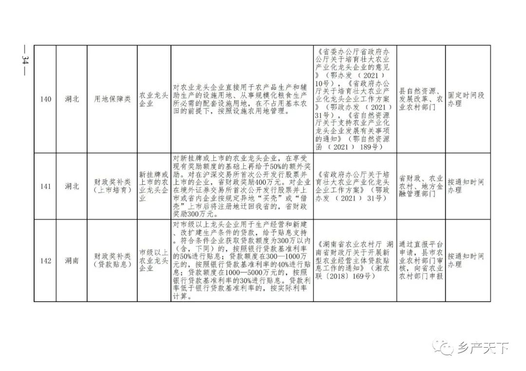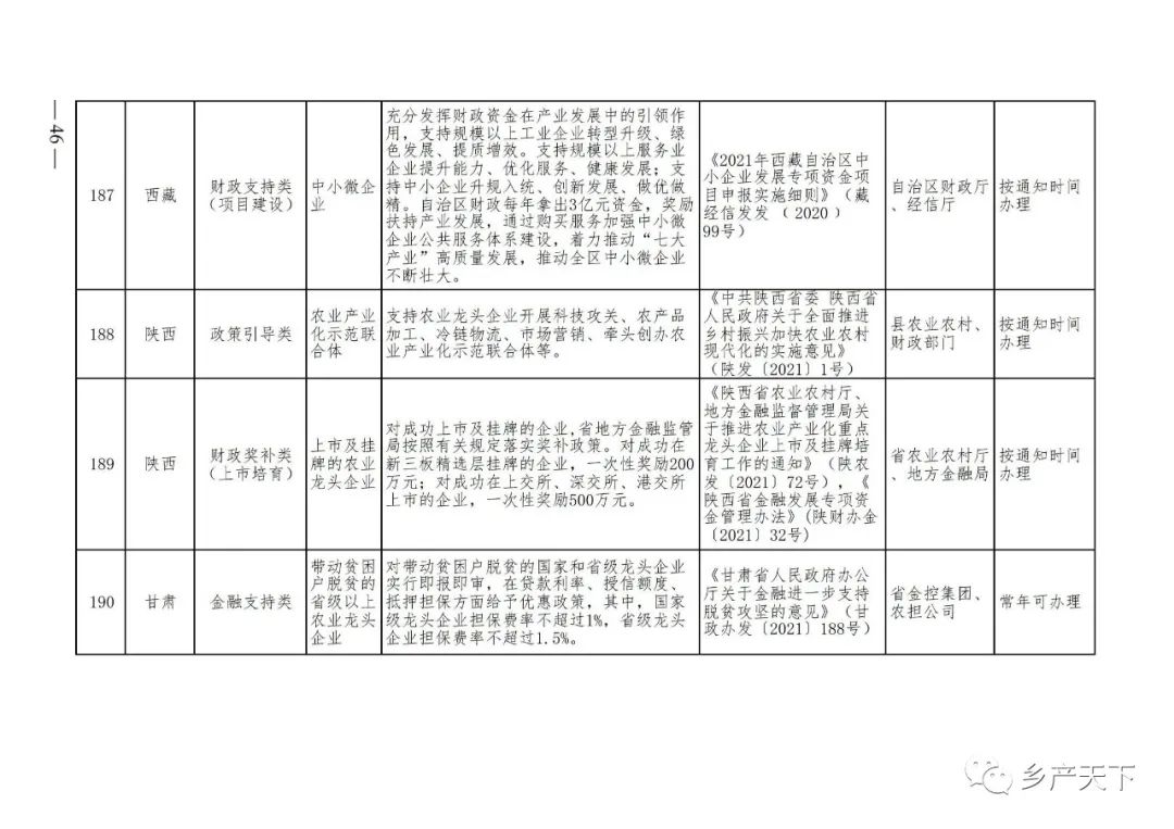 農(nóng)業(yè)產(chǎn)業(yè)化龍頭企業(yè)支持政策清單