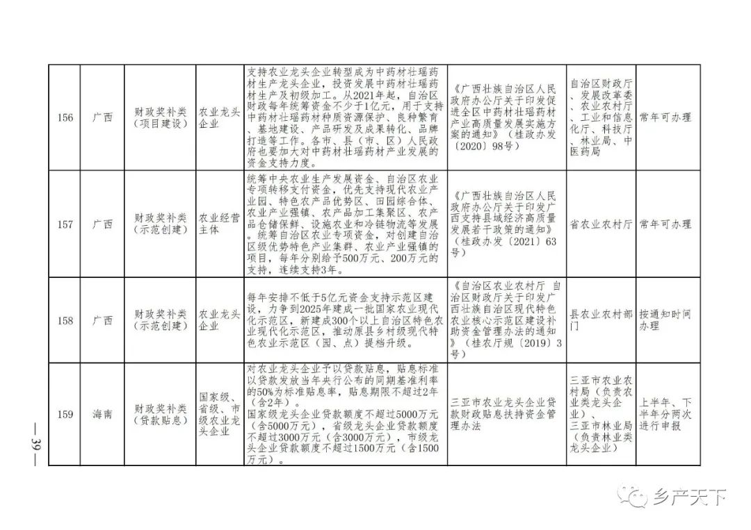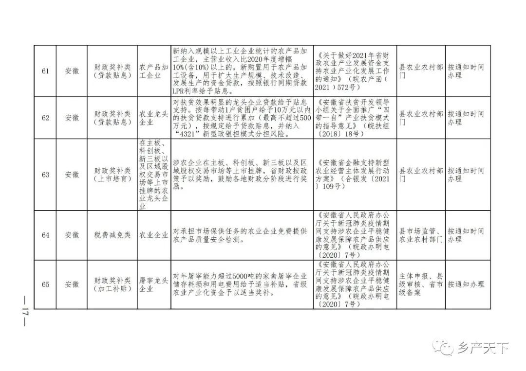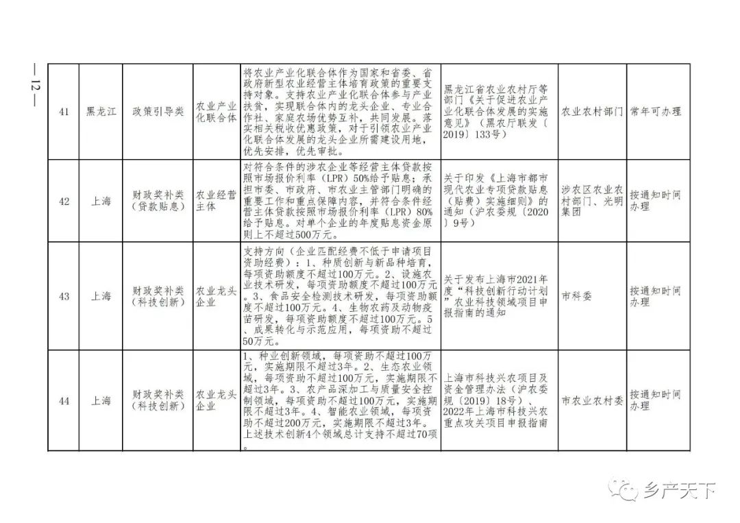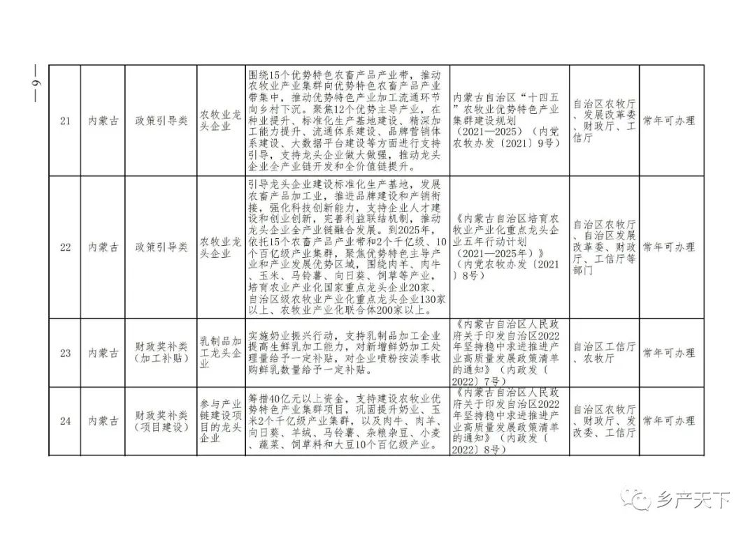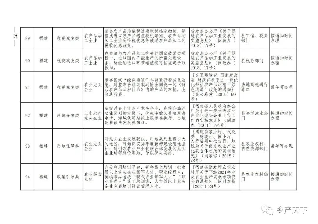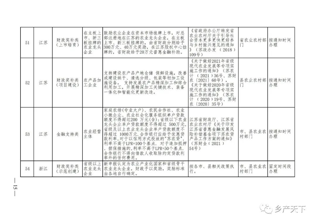 農(nóng)業(yè)產(chǎn)業(yè)化龍頭企業(yè)支持政策清單