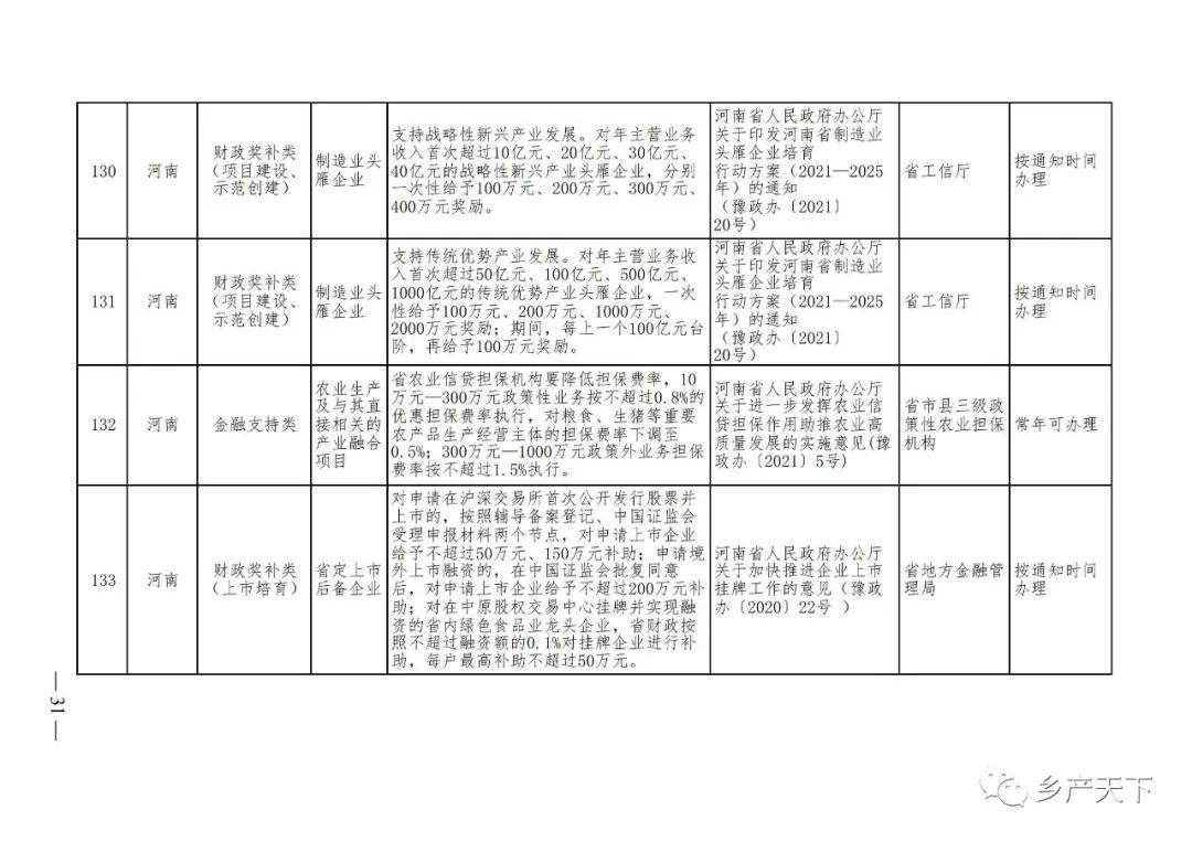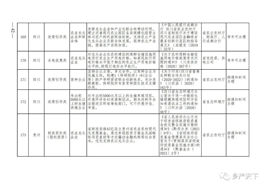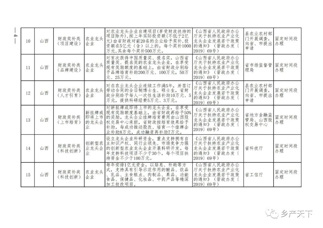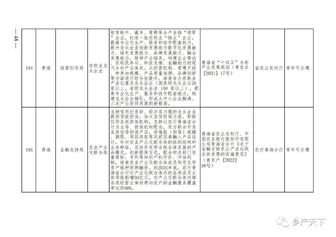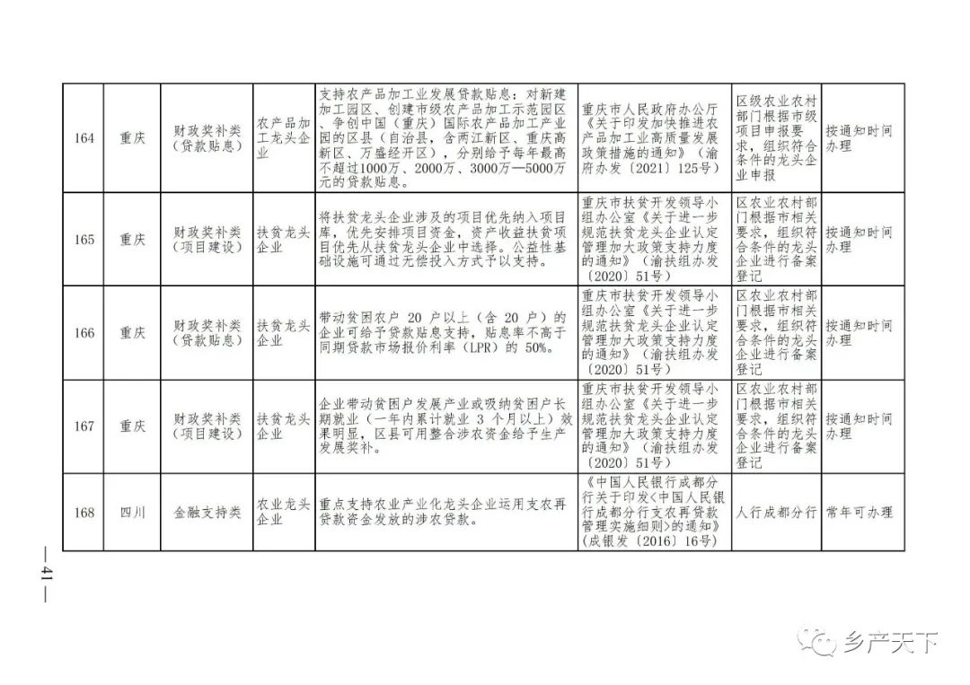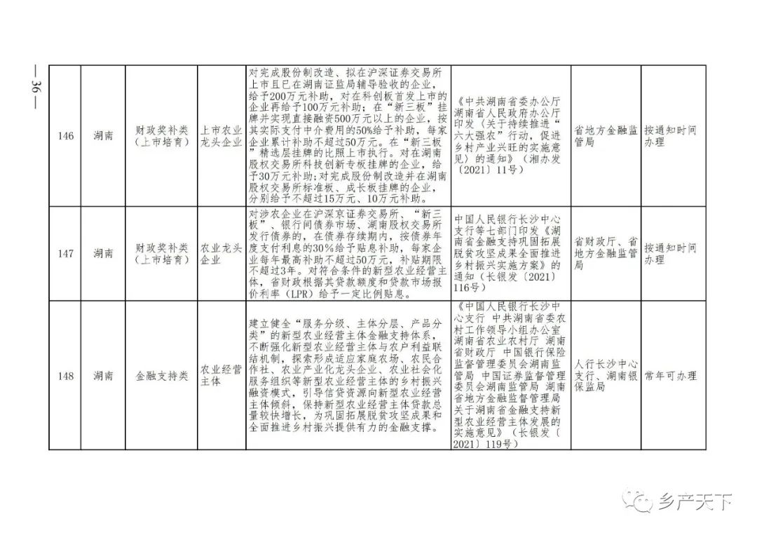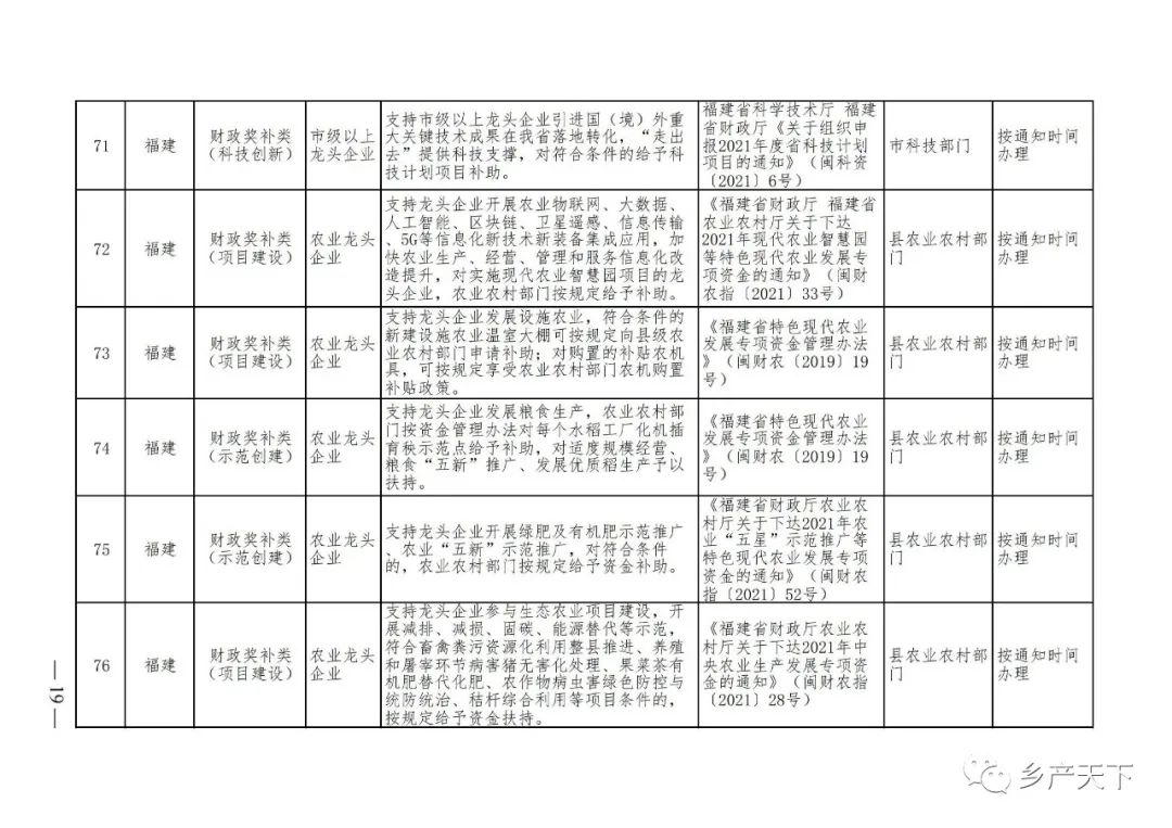 農(nóng)業(yè)產(chǎn)業(yè)化龍頭企業(yè)支持政策清單
