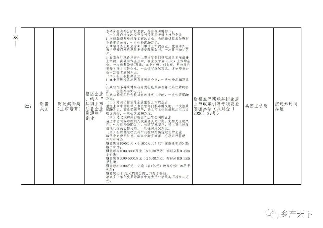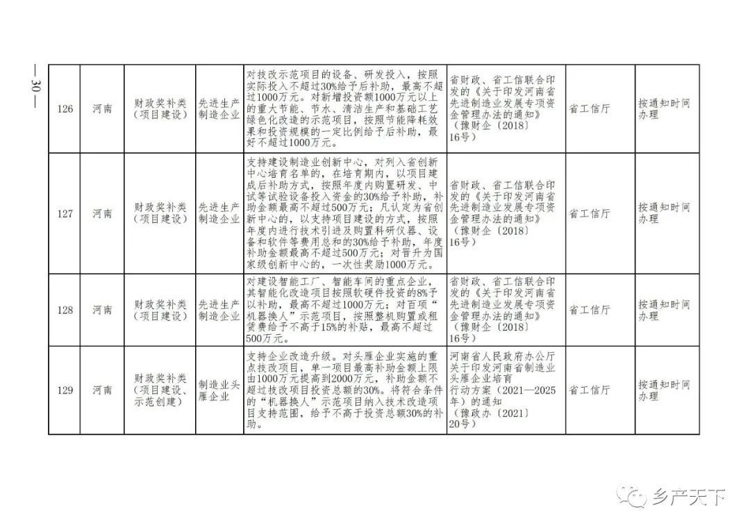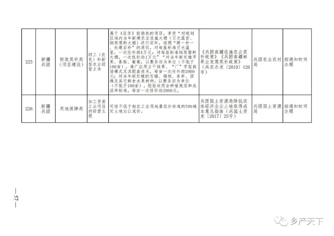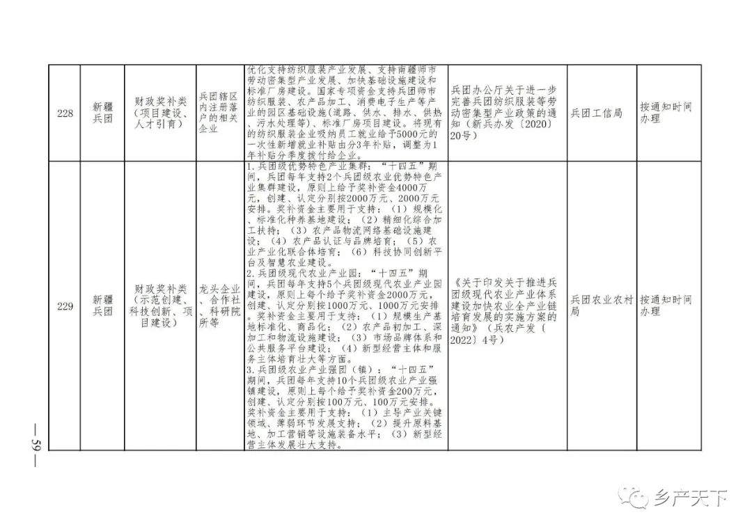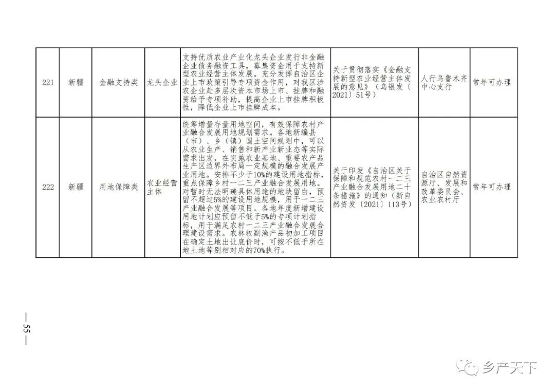 《清單》按照“政策類別、支持對象、具體內(nèi)容、政策依據(jù)、辦理部門、辦理時間”進行梳理,共涉及“財政獎補、金融支持、用地保障、稅費減免、水電優(yōu)惠、政策引導”等六大類229條政策。《清單》通知,各地支持政策發(fā)生變化,要及時反饋,鄉(xiāng)村產(chǎn)業(yè)發(fā)展司將定期更新發(fā)布。